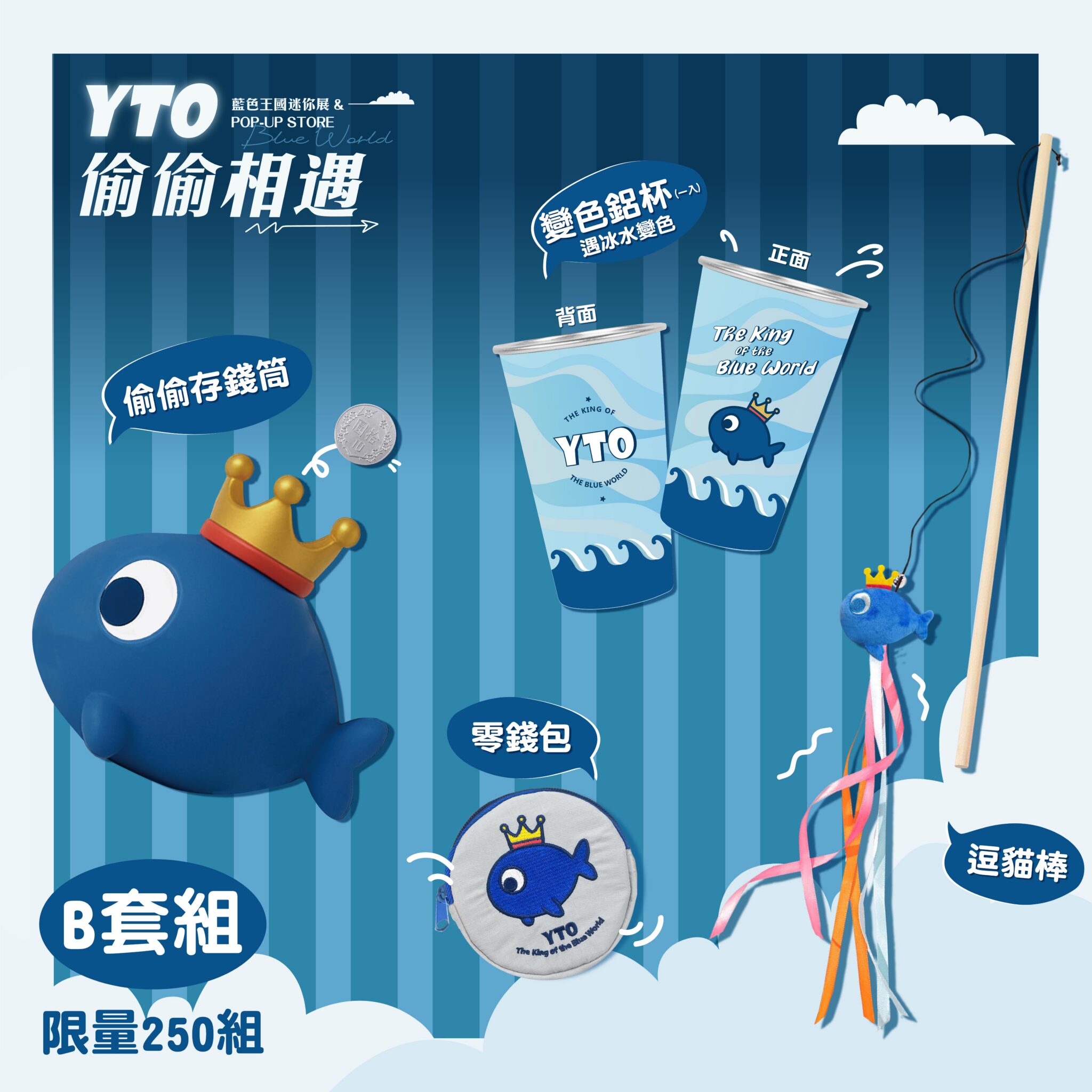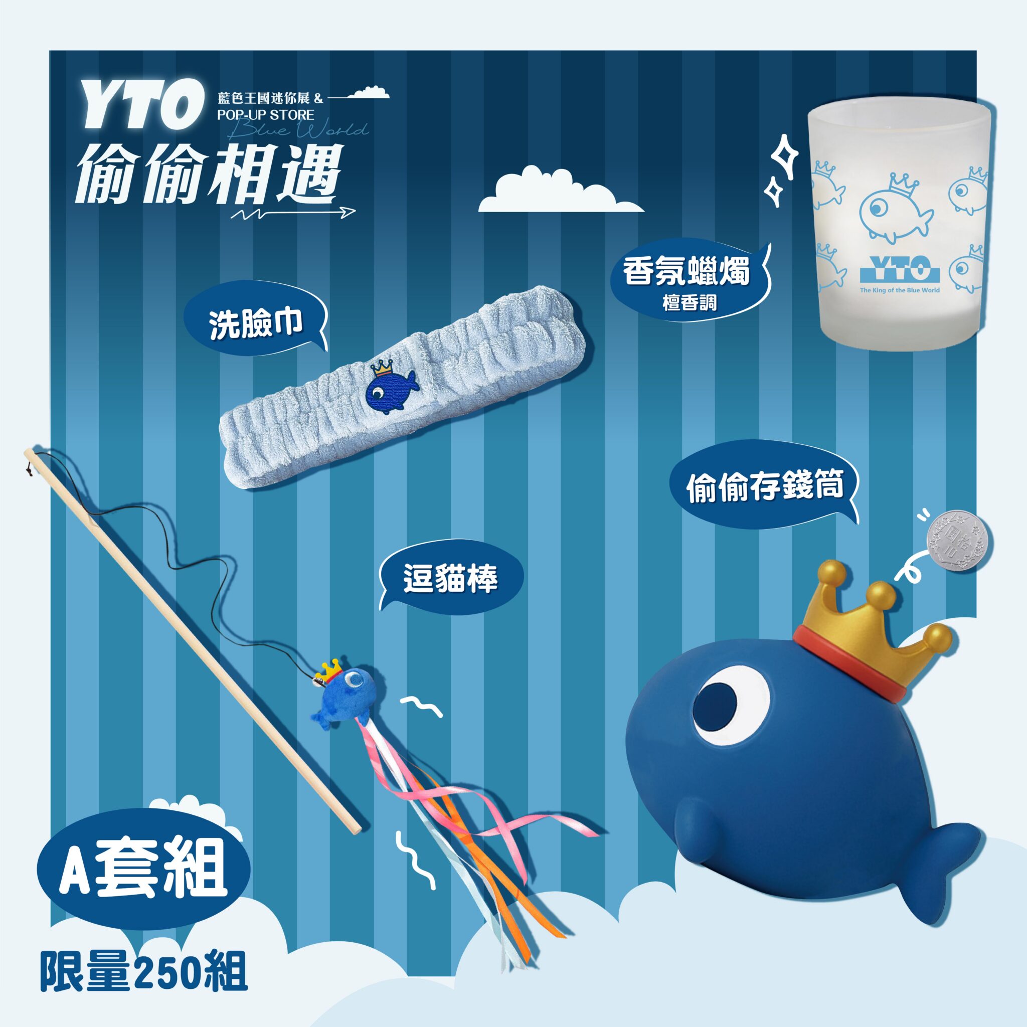 如今馬年即將來到,對TORO與粉絲來說更是「YTO」元年!本次展覽以「偷偷相遇」為主題,展場空間彷彿變成「藍色王國」小型藝廊,除了規劃 TORO 出道20年來親筆創作手稿區,更特別向廣大歌迷徵集印有YTO圖案的自製應援小物,印證TORO與歌迷超鐵情誼。今年,TORO決定將YTO正式品牌IP化,偕同之前”台風”同團成員且有製作過多位天王天后演唱會商品經歷的小村老師,共同把YTO變成官方角色,並首次推出品牌系列商品包含:2026主題桌曆、變色鋁杯、應援毛巾等商品,更是回應支持忠實歌迷的心意之作,讓粉絲一進展間就忍不住想「打包整個王國」回家。
