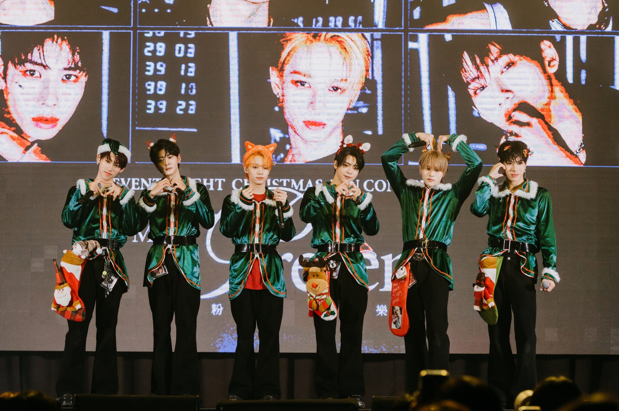 728 SEVENTOEIGHT趁著歲末年終於全台北中南三地開趴陪粉絲提前狂歡,上週日(12/14)於首站高雄場上搖身一變為「聖誕小精靈」的六位大男孩滿足粉絲願望,把整場同樂會變成「耶誕禮物派對」,特別祭出五大限定驚喜當成「耶誕禮物」寵粉;當中不僅翻唱應景耶誕歌〈Last Christmas〉(Ariana Grande版本)當成限定曲目,還首次以小分隊方式分為「哥哥組」、「平均18 歲」兩組表演來分庭抗禮,再加上透過近距離互動遊戲送出親手準備手繪狗狗插畫、限定小卡等多重貼心小禮,可說誠意十足!此外六人搭配耶誕溫馨氣息及自身吉祥物「狗狗」的主題推出結合公益暖心企劃,透過每張門票部分收入捐獻給浪浪做愛心,與粉絲一同在聖誕佳節冬日送暖,可說別具意義!高雄場上驚喜連發的他們最後更無預警拋出震撼級「彩蛋」,一舉公布隊長麒文及成員美祥兩位成員將於明年上半年高唱從軍樂的計畫,讓這場見面會不只甜度爆表,更充滿成長與承諾的重量,成為728 SEVENTOEIGHT與粉絲之間最難忘的聖誕回憶!