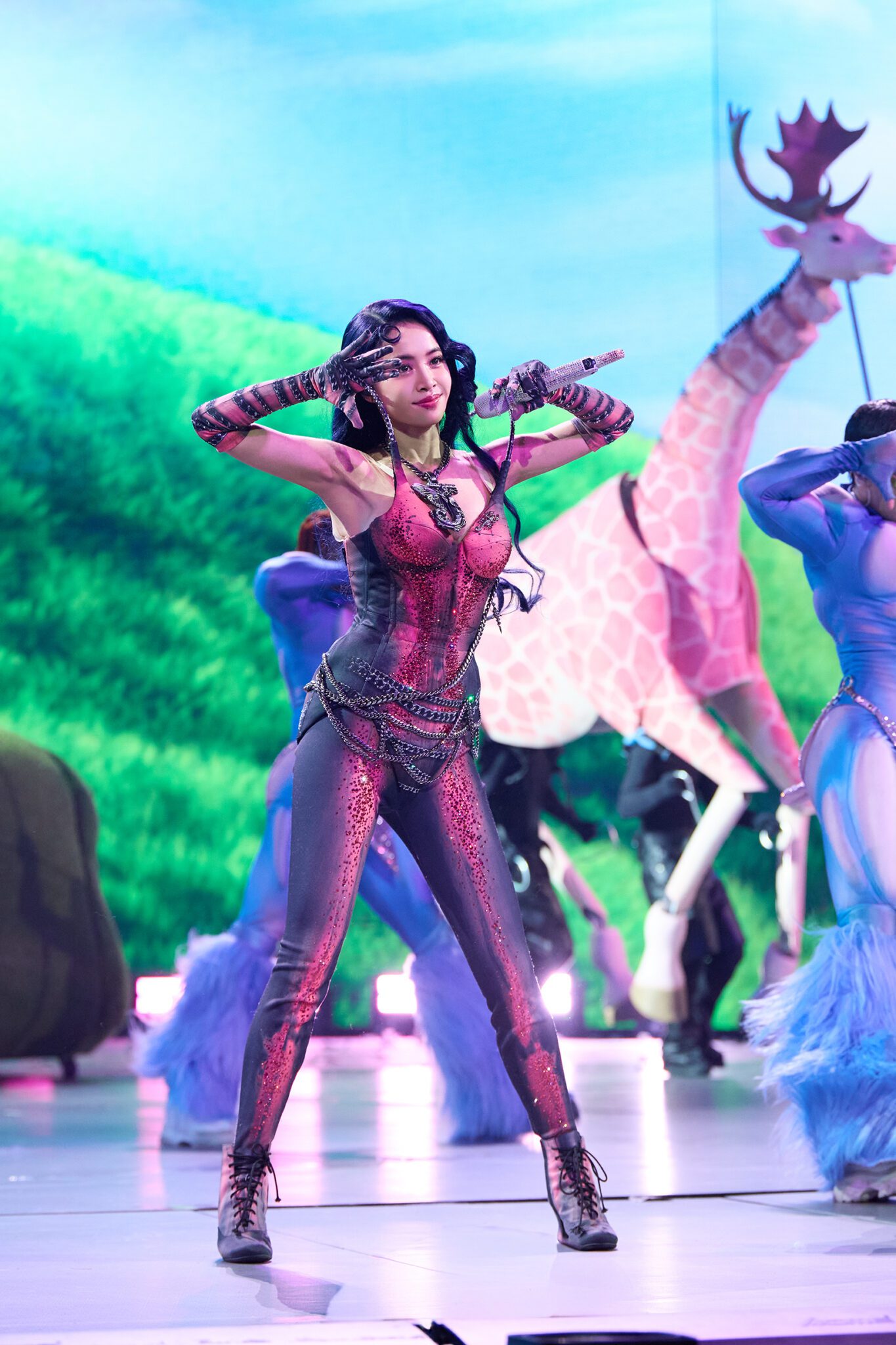 JOLIN舞動《PLEASURE》愉悅樂章迎七層樓高「愉悅之女」誕生,招牌勁歌舞曲壓軸串聯打造2025最嗨跨年夜電音派對炸裂大巨蛋!而隨著演唱會時序進入最終章〈THE GARDEN OF HER OWN 她創造的花園〉,舞台氛圍也隨著燈光、雷射與舞群動線交織成一座流動的愉悅樂園,全場四萬名觀眾狂歡情緒也逐漸被解放;在第五段VCR影像中,身為「愉悅之母」化身的JOLIN完成最終覺醒,自珍珠貝殼中甦醒,在歷經燃燒、崩解、重生及打破既定律法後,震撼全場的八臂「愉悅之女」正式誕生!而畫面中萬物誕生、百花盛放,傳遞「自己就是花園,自己就是愉悅」的終極宣言,隨即36名舞者揮舞旗幟開道,氣勢磅礡迎接主角JOLIN登場!只見身穿以蛇紋與蛇形符號打造「愉悅女王」戰袍的JOLIN自「蛇冠心座」霸氣現身,高唱〈PLEASURE〉燃爆全場,過程中被舞者高高托舉的她象徵愉悅之母的完成與加冕,歌曲結束後隨即站上延伸高台,在狂嗨的電音 Remix 節奏中接連演唱〈愛無赦〉、〈怪美的〉,將現場情緒推至新一波高峰!
