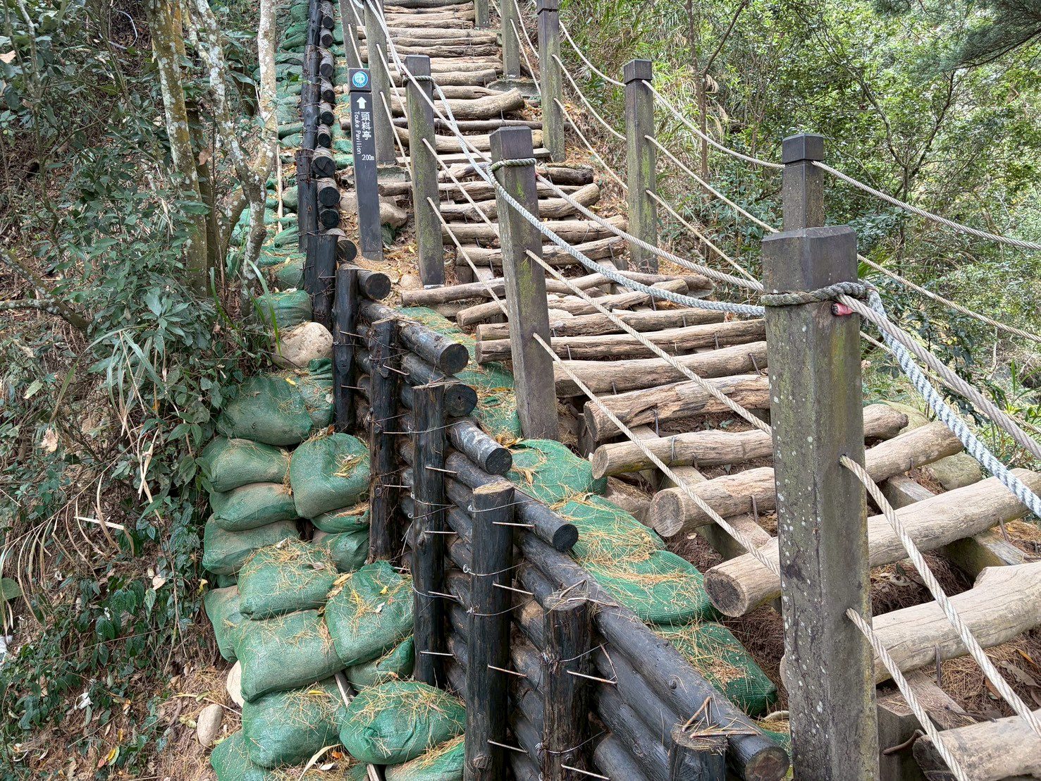 觀旅局指出,這次災修工程重點包含邊坡穩定與落石風險處置、排水系統改善、步道路基與鋪面修復,以及木棧道修繕更新等四大面向。施工期間同步進行鬆動土石清除、危險樹木排除、排水設施清疏與補強,並修復受損鋪面、護欄、階梯及安全設施,同時加強工區圍設、警示標示與人車動線管理,以降低二次災害風險,提升整體通行安全。