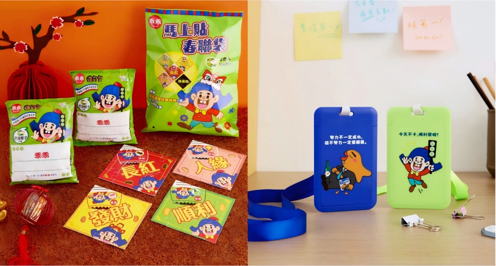 ▲過年必備的乖乖零食推出春聯拼圖與證件套!(乖乖提供)