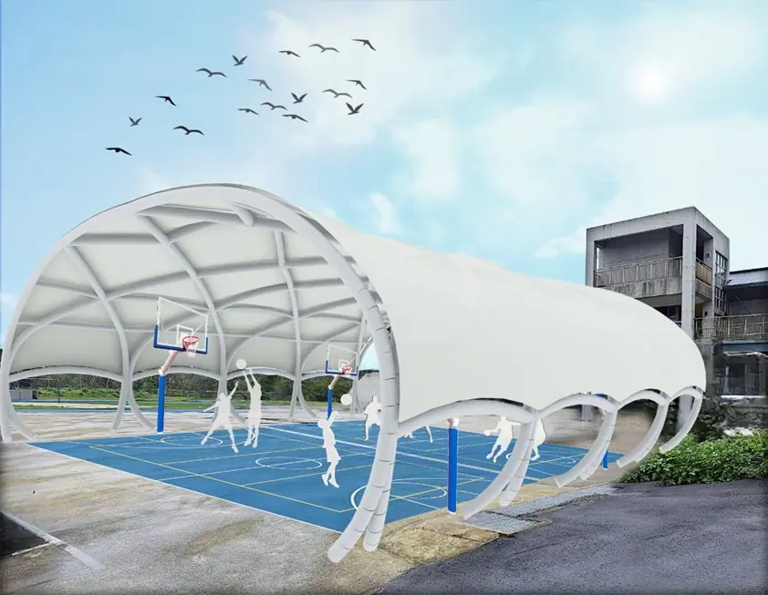 暖暖高中校長單益章指出,本案為依法取得建照的半戶外球場工程,基地位於校內耀武館前空地,整體設計採鋼構結構搭配薄膜屋頂,具備遮陽、避雨、良好採光與通風等特性,適合籃球、排球等球類運動使用,同時亦可作為校內集會、典禮及多元教學活動空間,有效紓解校內大型活動場地不足問題。