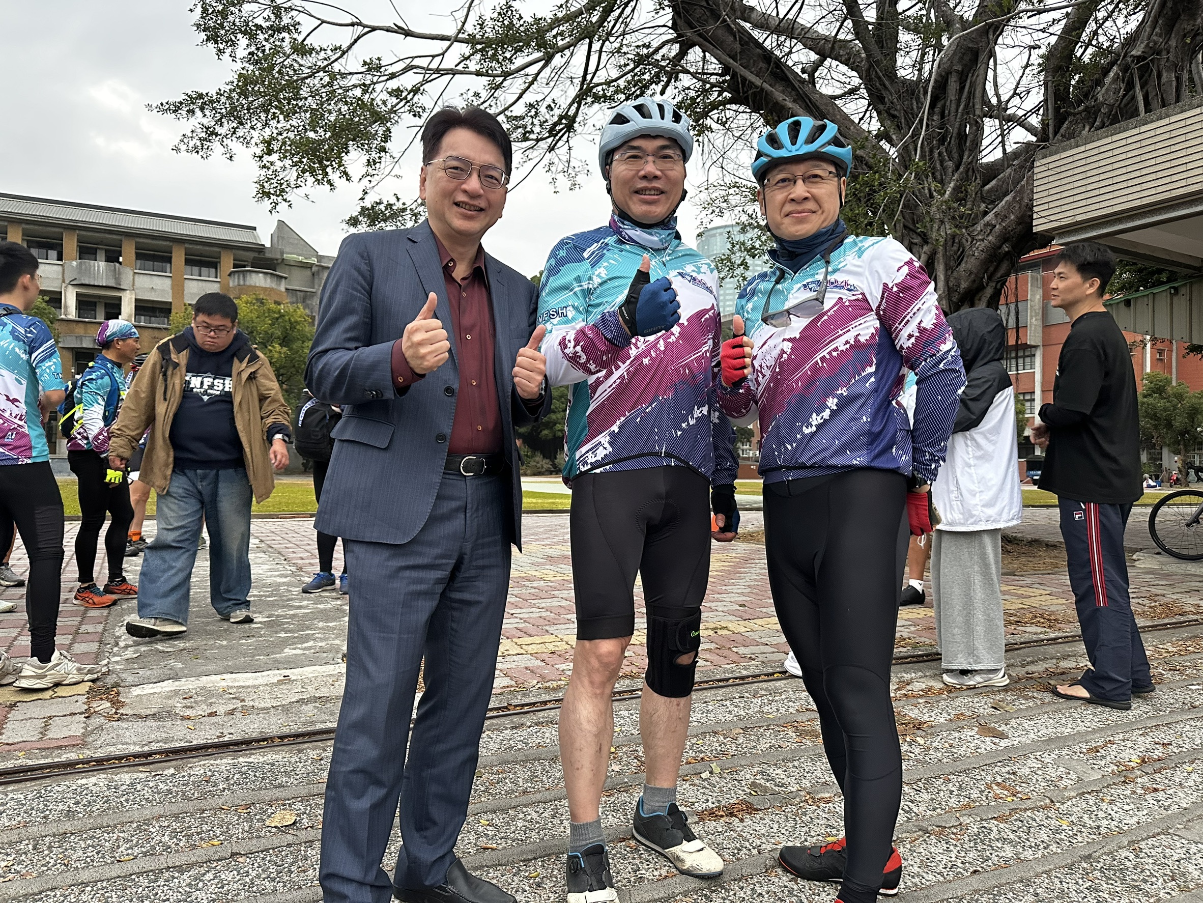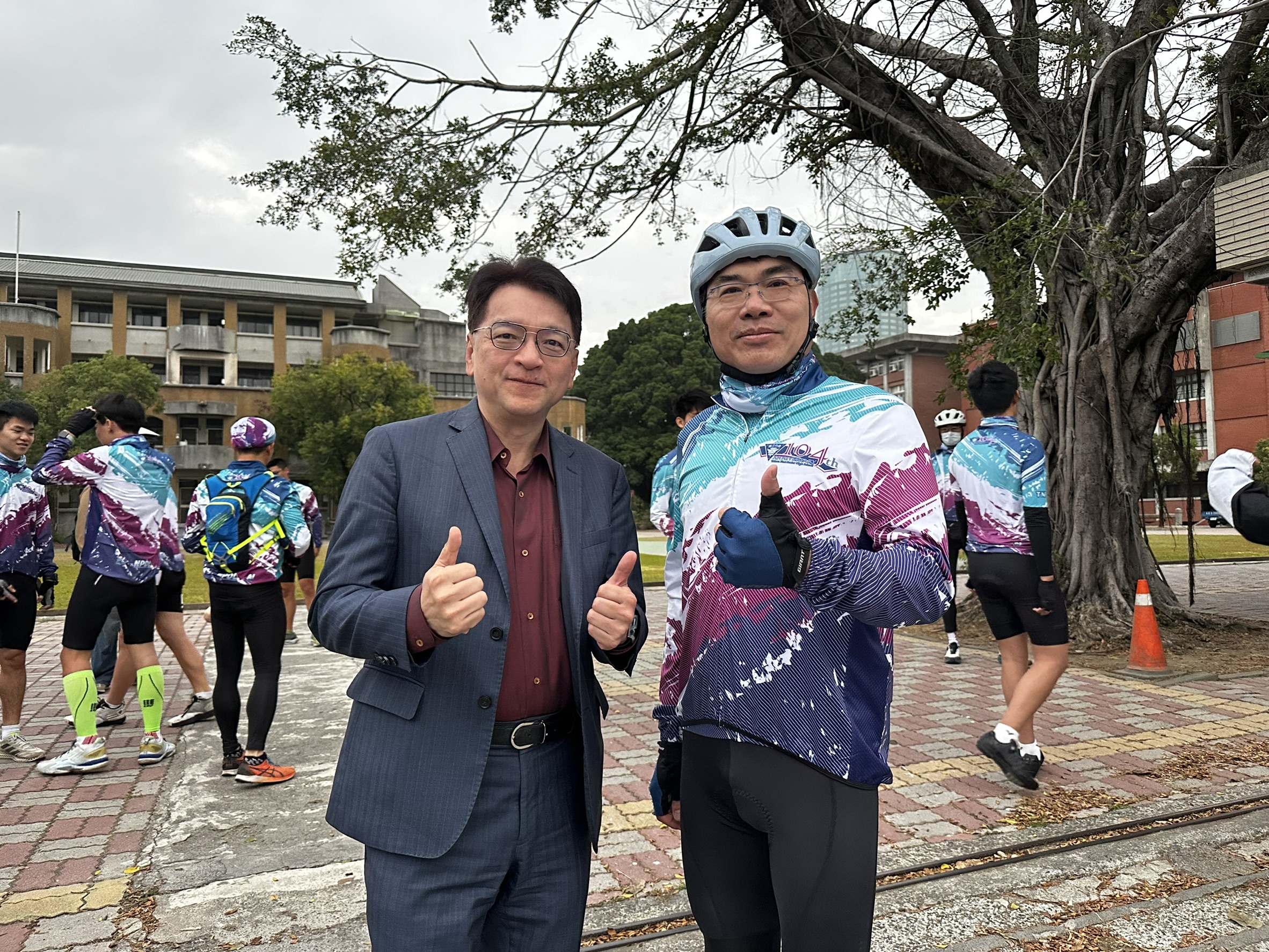 台南一中師生9天騎單車環島近千公里,已成為該校傳統,今(4日)天清晨,總領隊廖財固校長帶領共45位師生,在校門口集合出發,根據氣象預報,這次行程在北部時會遇上霸王級寒流,恐挑戰10度以下低溫,但許多報名的學生都視參加這項活動,有讓自己「轉大人」的意義,因此他們說不怕寒流來襲,有信心騎完全程,台南一中校友會前理事長吳榮彬、校友林健正教授和王建仁牙醫師全程參加擔任後援,今早出發前,校友會理事長、成大醫院心臟內科名醫、內科部主任劉秉彥教授和前任理事長吳俊泰董事長、家長會長許世烜律師等校友均到場加油。