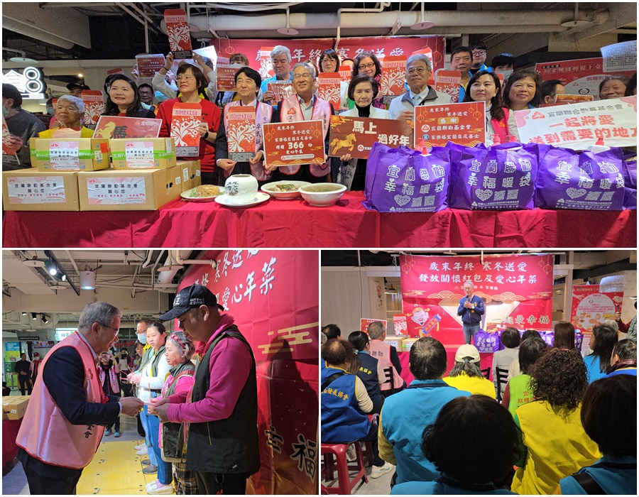 為讓弱勢團體及清寒人家也能溫暖過好年,宜蘭聯勸2月11日發放關懷紅包與物資,並由家樂福宜蘭店募集366組愛心年菜,在舉行發放的家樂福宜蘭店現場,透著寒冬送愛的溫馨氣息。