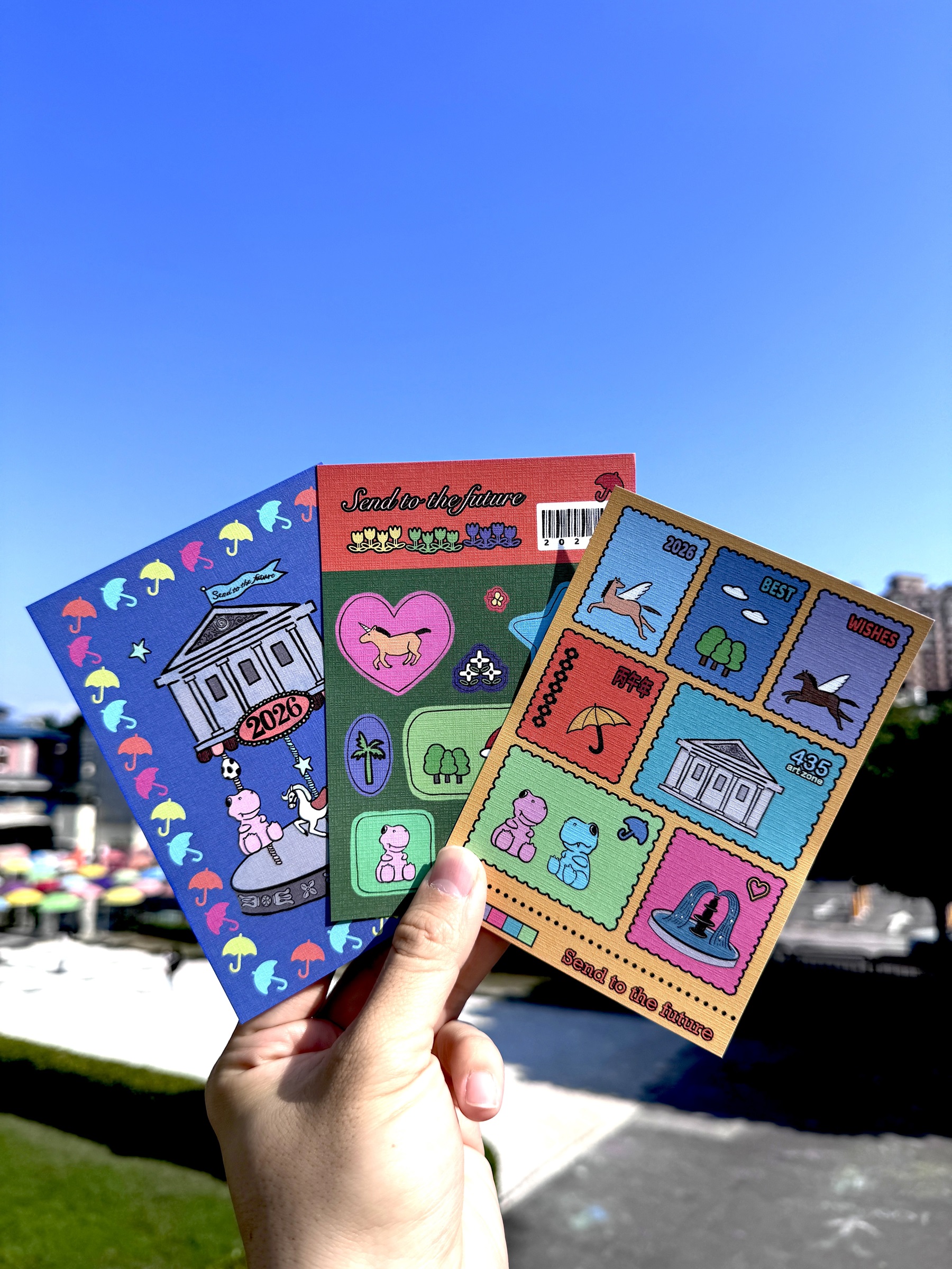 ▲板橋435藝文特區推出的3款馬年未來明信片,邀請民眾寫下對未來的期許。(圖/新北市文化局 提供)