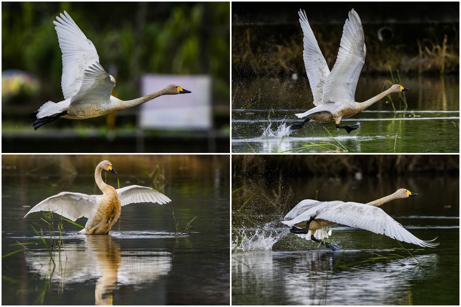 ▲小天鵝踏水展翅而起的美姿。(圖/吳楊欽攝)
