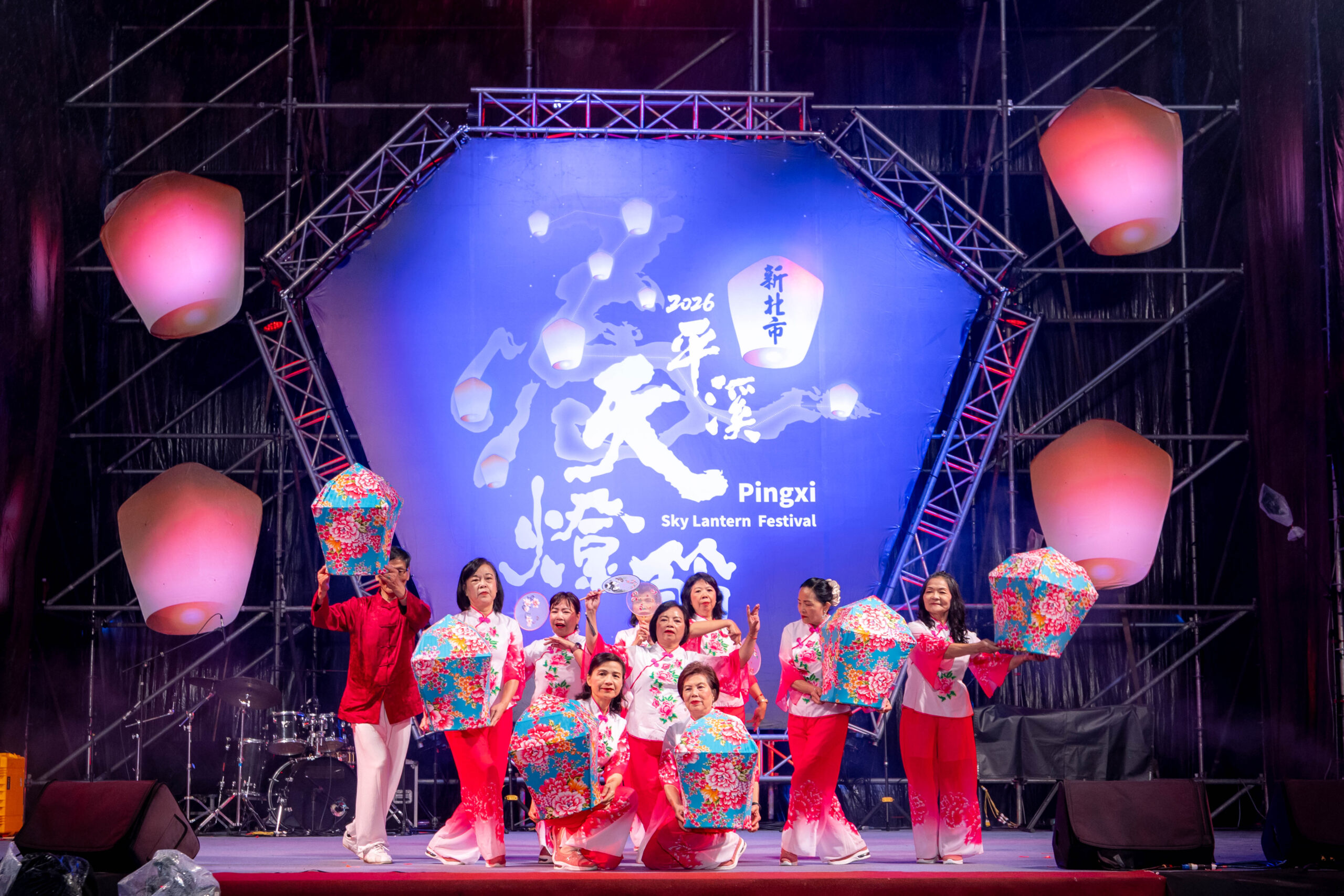 ▲歡慶元宵!十分場由黑金歲月舞蹈團以曼妙舞姿揭開序幕。(圖/新北市觀旅局 提供)