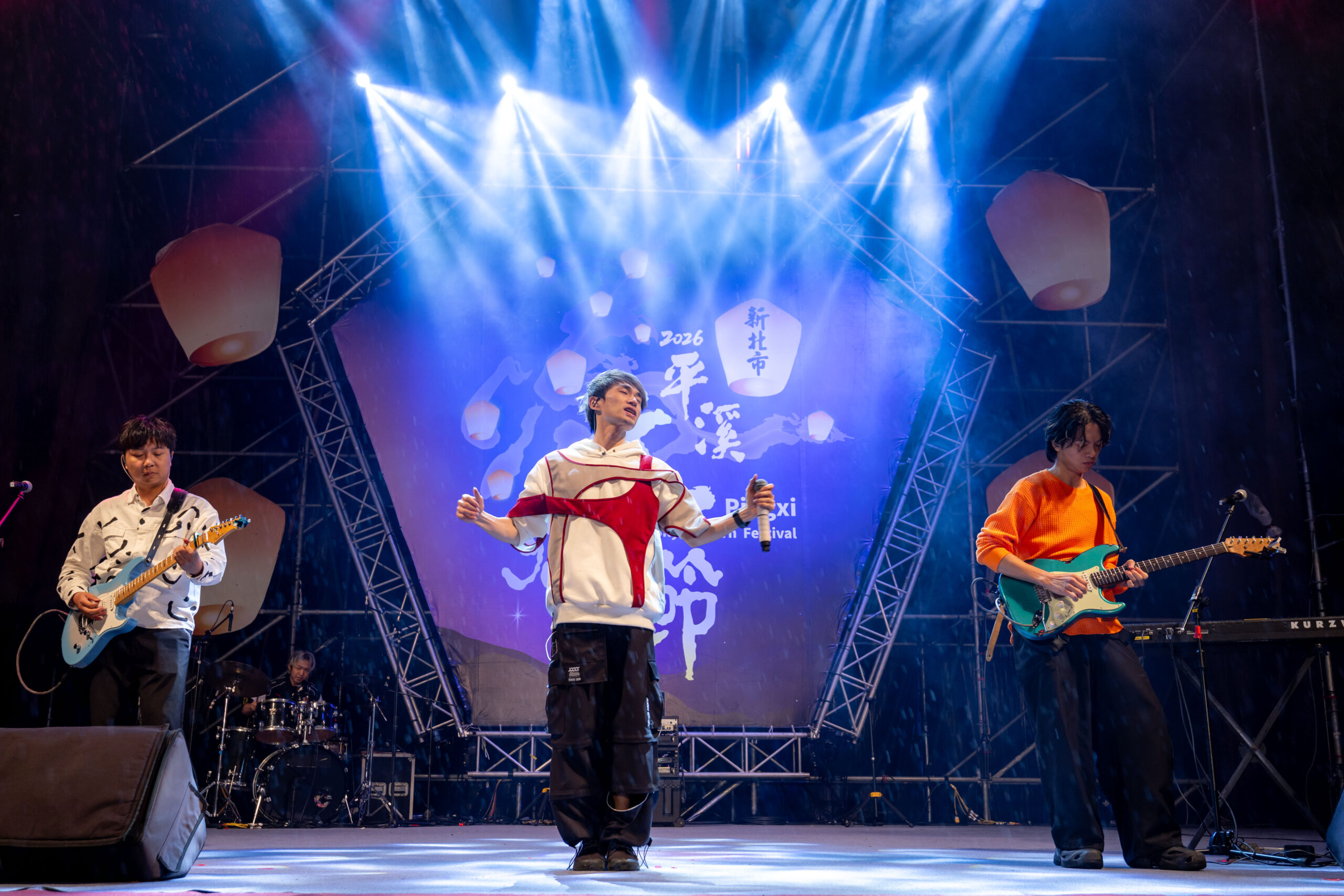 ▲十分場越夜越熱鬧!八青哥登台飆唱,為元宵夜注入滿滿活力。(圖/新北市觀旅局 提供)