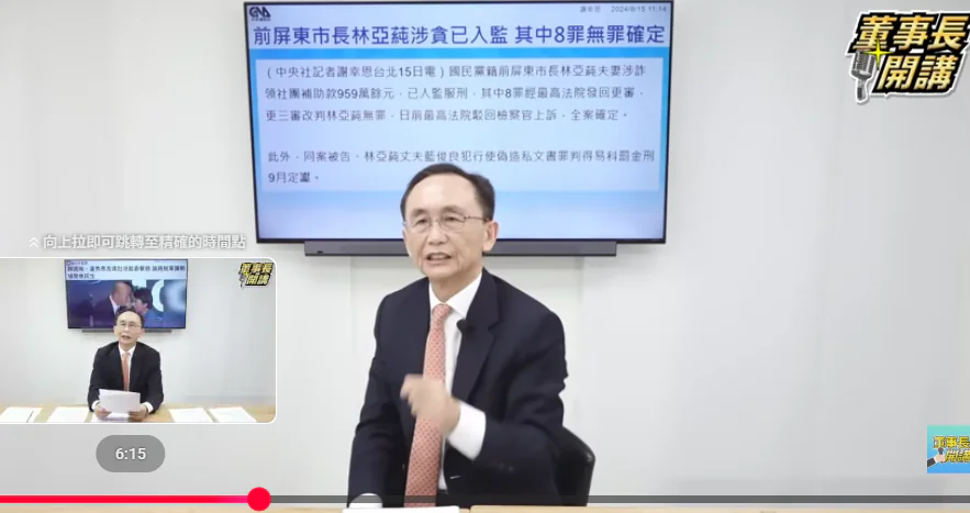 節目中,吳子嘉也提及屏東前市長林亞蒓案件。他表示,林亞蒓在擔任縣議員期間,被控利用議事權讓縣府補助其丈夫藍俊良所經營的協會,一審曾認定涉及234個貪污罪,重判夫妻各16年。後續審理,林亞蒓與藍俊良最終依貪瀆罪判刑7年10個月,褫奪公權5年,涉案金額約900萬元,已入監服刑。吳子嘉認為林亞蒓案與此次陳見賢補助妻子協會的爭議,操作模式有相似性。