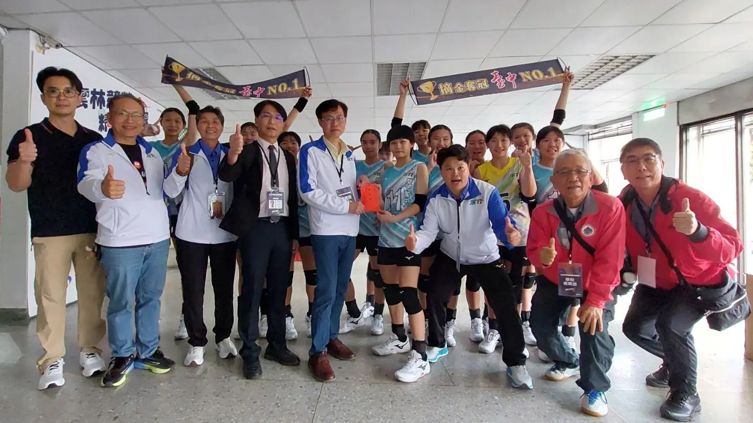 雙十國中校長林大欽指出,女排隊在教練黃淑慧、侯雅惠及羅儀璟的指導下,曾於103至106學年締造隊史首次四連霸的輝煌紀錄,並在109至111學年度再創三連霸佳績。今年賽季,雙十女排隊在複賽中展現穩健且強大的實力,以七連勝的佳績挺進決賽,最終以全勝戰績奪得冠軍,圓滿達成年度目標,林校長讚揚球員們勇於挑戰、默契十足,為學校帶來光彩。