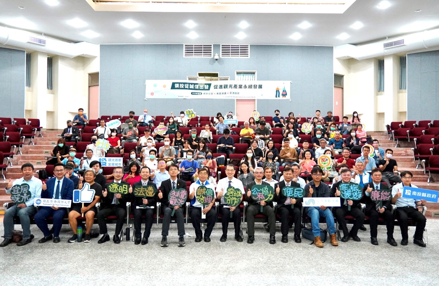 縣府結合國立暨南國際大學及南投縣觀光產業聯盟協會22日在暨南大學舉辦「領投從誠信出發~促進觀光產業永續發展」交流座談會,以誠信治理及觀光永續為主軸,邀集南投縣觀光產業公協會代表、企業代表、轄區司法機關及暨南大學師生進行深入的交流溝通,希望能凝聚產官學界力量及共識,建立跨域夥伴關係,共同推動企業社會責任,帶動南投縣觀光產業的永續經營發展,進而打造南投成為「宜居城市」。